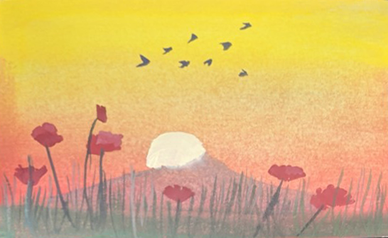 The sun ended up looking like egg yolk. Next time, spend more time on redrawing the mountain until it looked better!