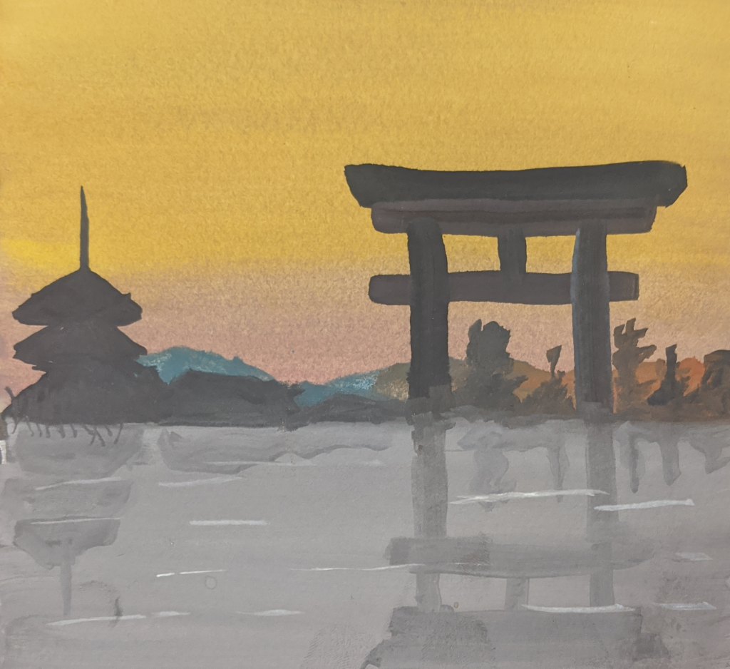 More gradient.. I messed up on the bottom part, so ended up painting reflections on a river/lake instead. Don’t panic when you make mistake! Make it work somehow~